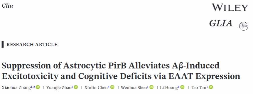 谭涛Glia发文:Suppression of Astrocytic PirB Alleviates Aβ-Induced Excitotoxicity and Cognitive Deficits via EAAT Expression