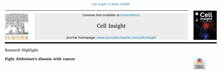 宋伟宏Cell Insight发文:Fight Alzheimer's disease with cancer